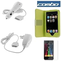 Premium Light Green Folio Wallet Leather Case + Premium Clear Durable Reusable LCD Screen Protector + Rapid Car Charger + Home Travel Charger for Apple Ipod Touch Itouch 8Gb 16GB 32Gb 2G 3G 2nd 3rd Generation